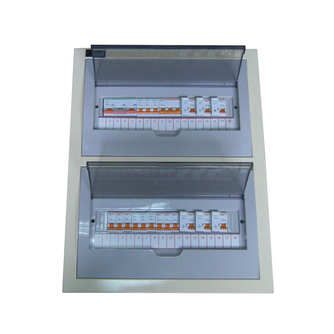 我公司出厂的ACP型户内照明配电箱,箱内配有中性母排端、接地母排端及DIN导轨,适用于交流频率50Hz,电压220V的民用建筑,产品分为铁面和塑面两种,从8位到36位全系列产品都有,可满足不同户型的需求。